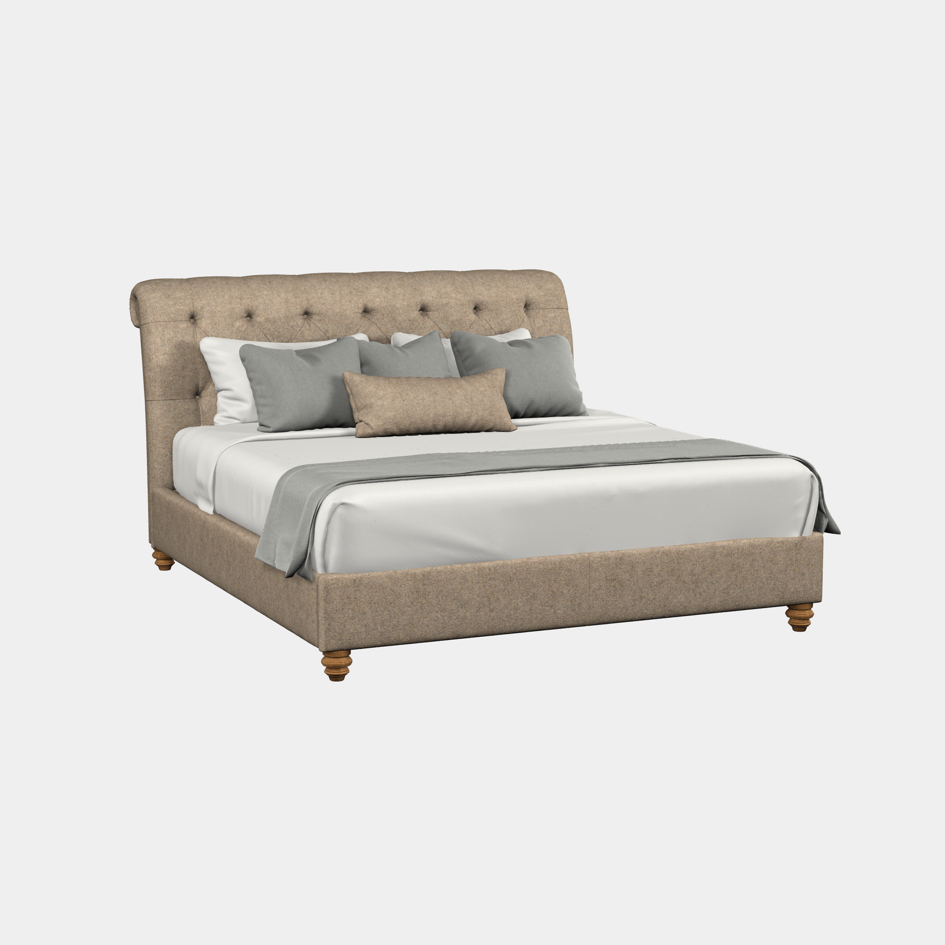 The headboard is enhanced by deep buttoned detail and the accented piping adds luxury and style.