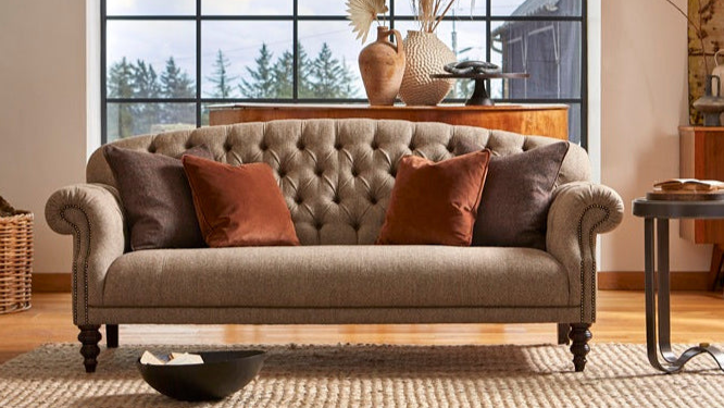 A traditional design with a softly shaped back and classic deep-buttoned detailing.