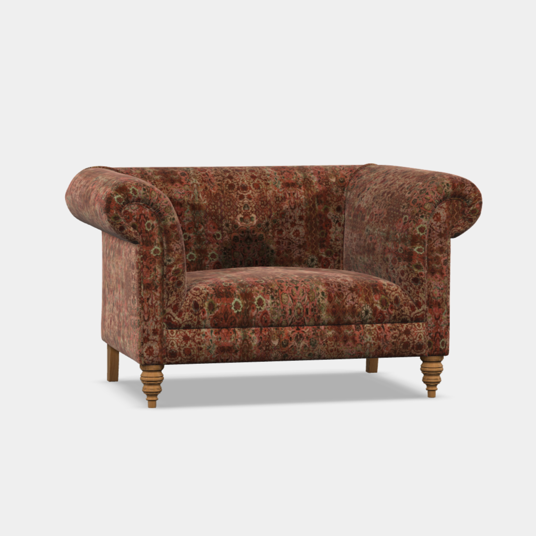 Gently scrolled arms create an opulent, luxurious silhouette.