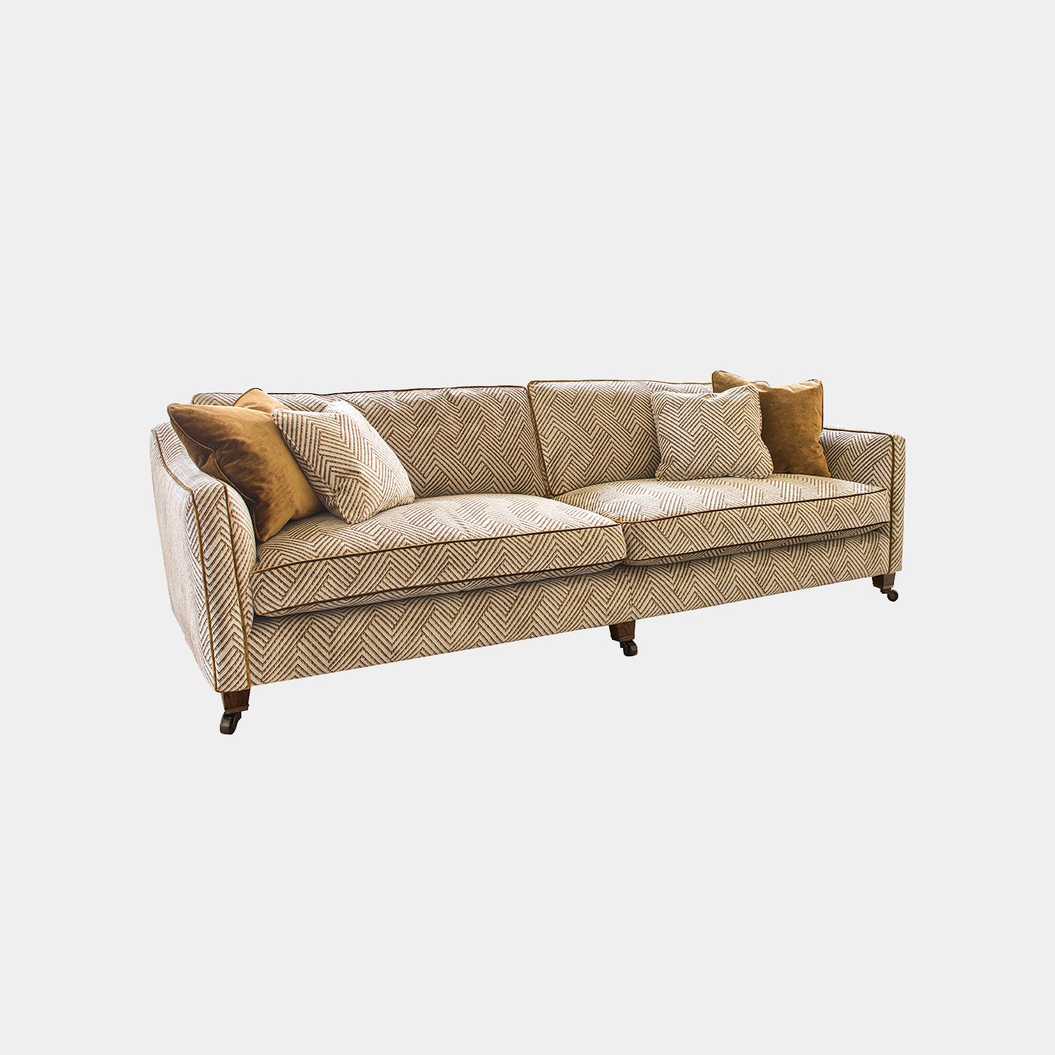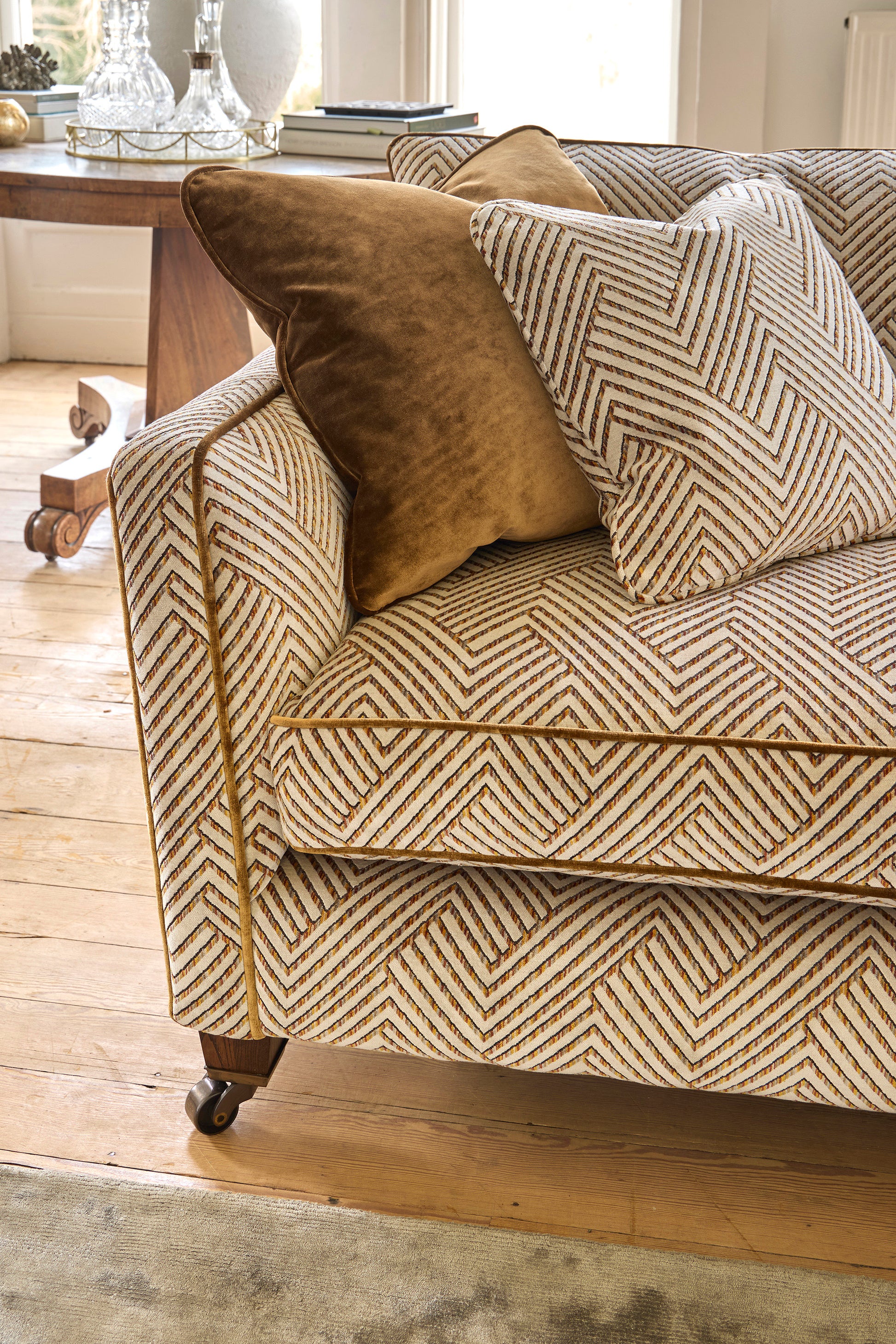 Shown here in our signature oversized herringbone Grassetto Velvet, this piece delivers rich texture and depth of colour—perfect for creating a sophisticated interior statement. A contrast trim in Opium Velvet adds a touch of luxury and tailored definition.