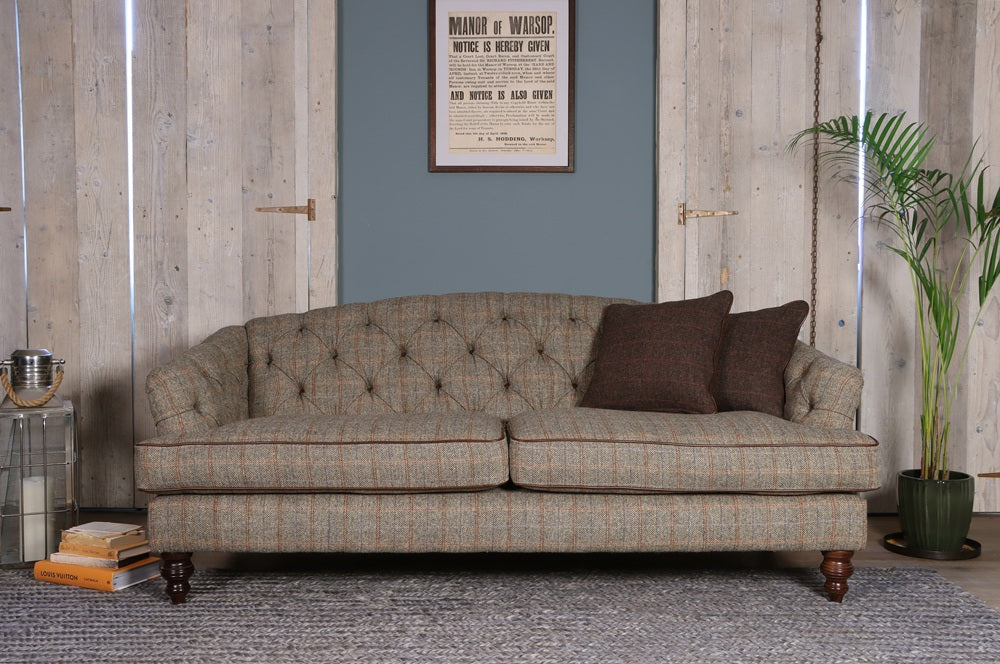 A traditional design echoing the elegance of the Edwardian era, with a softly shaped back and classic deep-buttoned detailing.