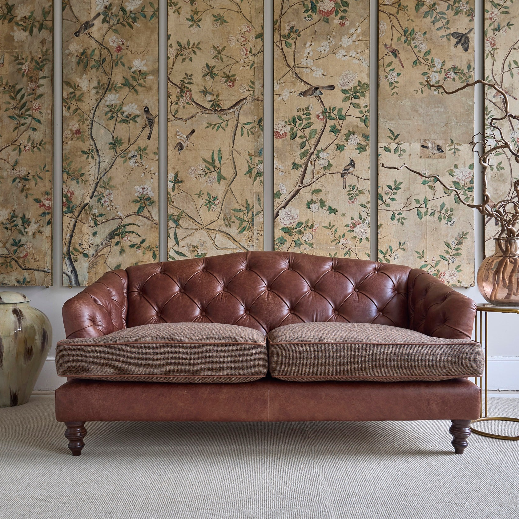 A traditional design echoing the elegance of the Edwardian era, with a softly shaped back and classic deep-buttoned detailing.