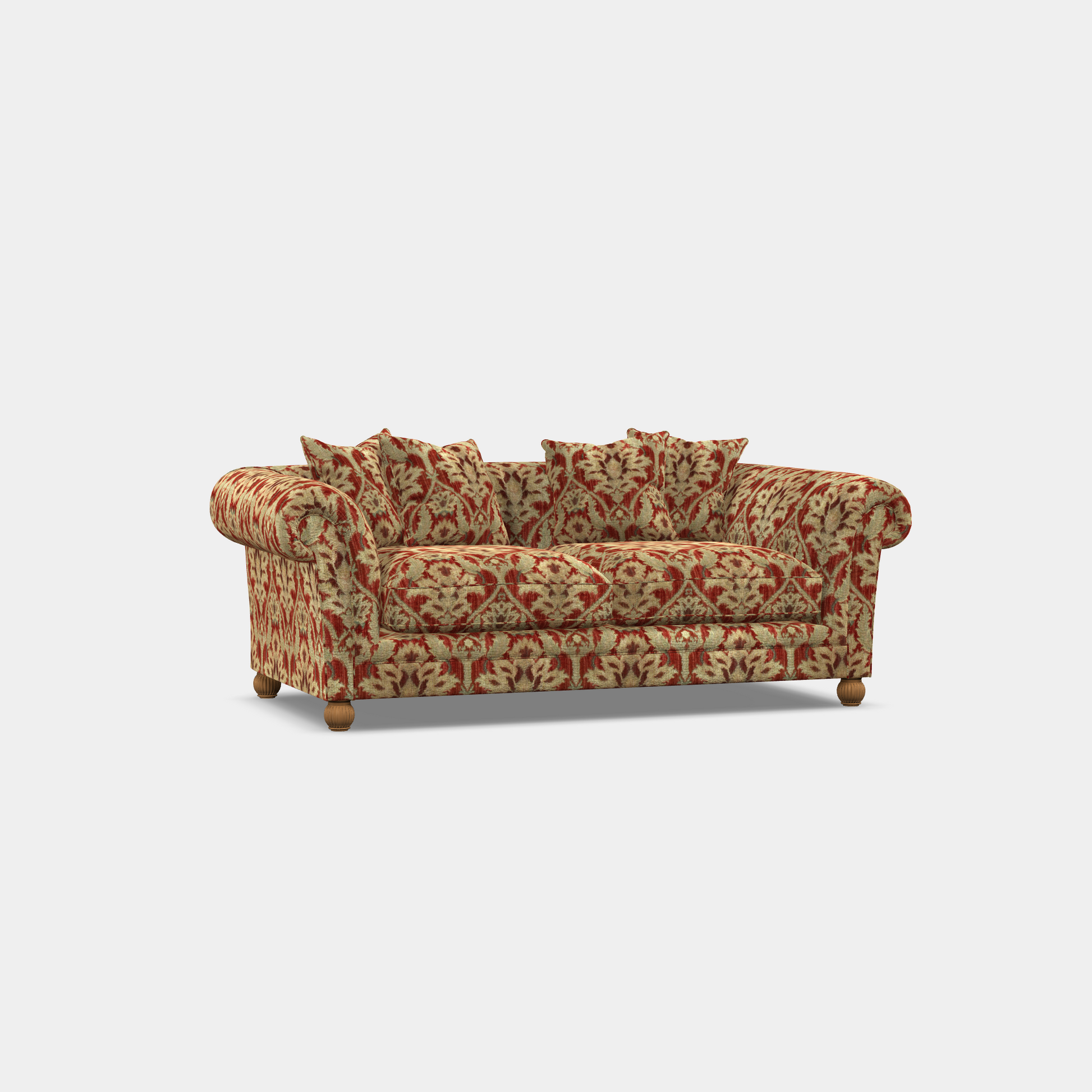 With large scroll arms, low back and hardwood feet, the sofa brings the elegance of a bygone era to contemporary living.