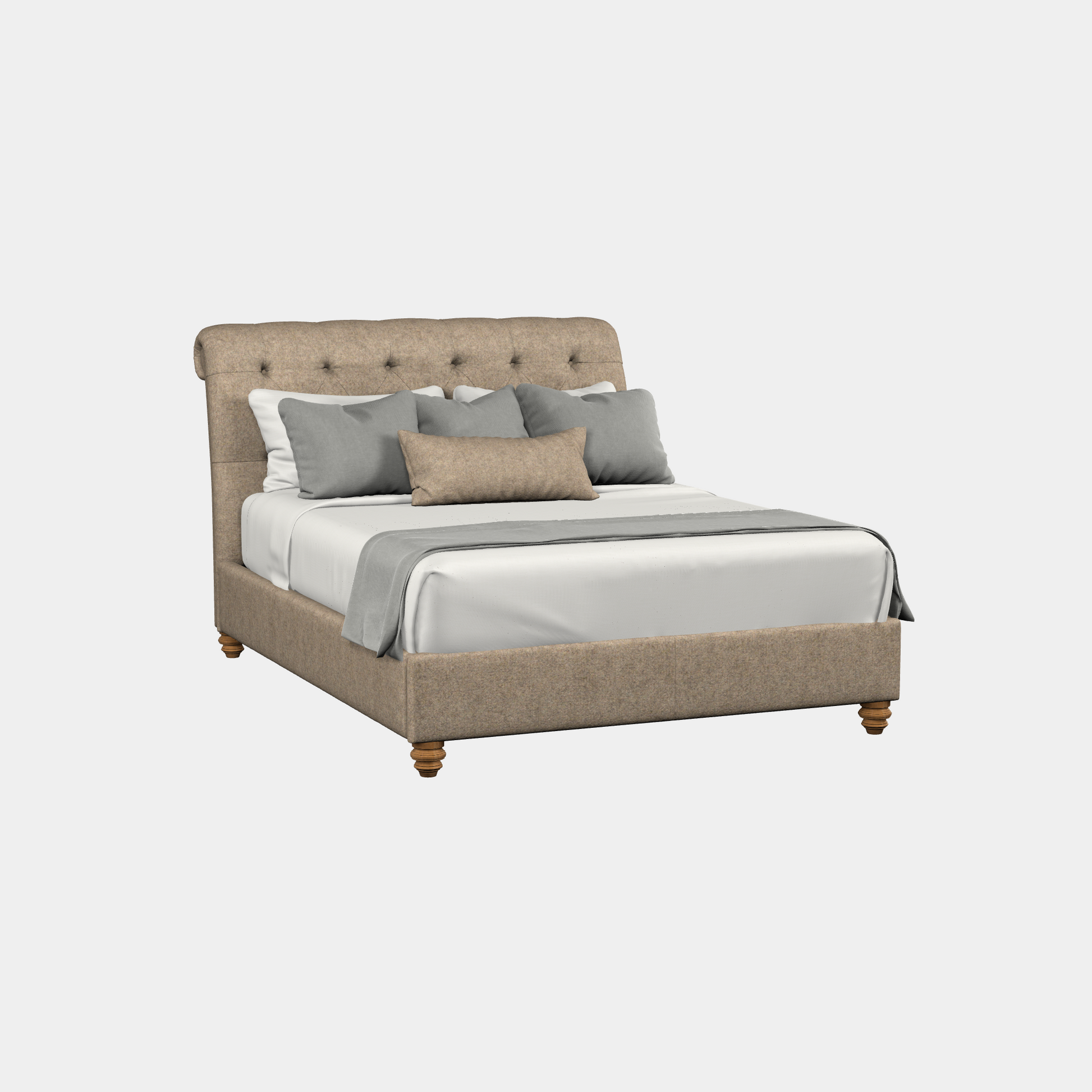 The headboard is enhanced by deep buttoned detail and the accented piping adds luxury and style.