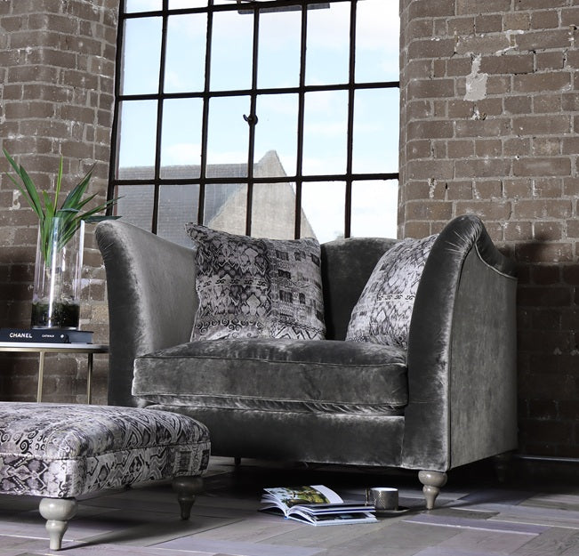 A glamorous modern classic with a hint of art deco style, defined by a gently sloping back and upward sweeping arms.