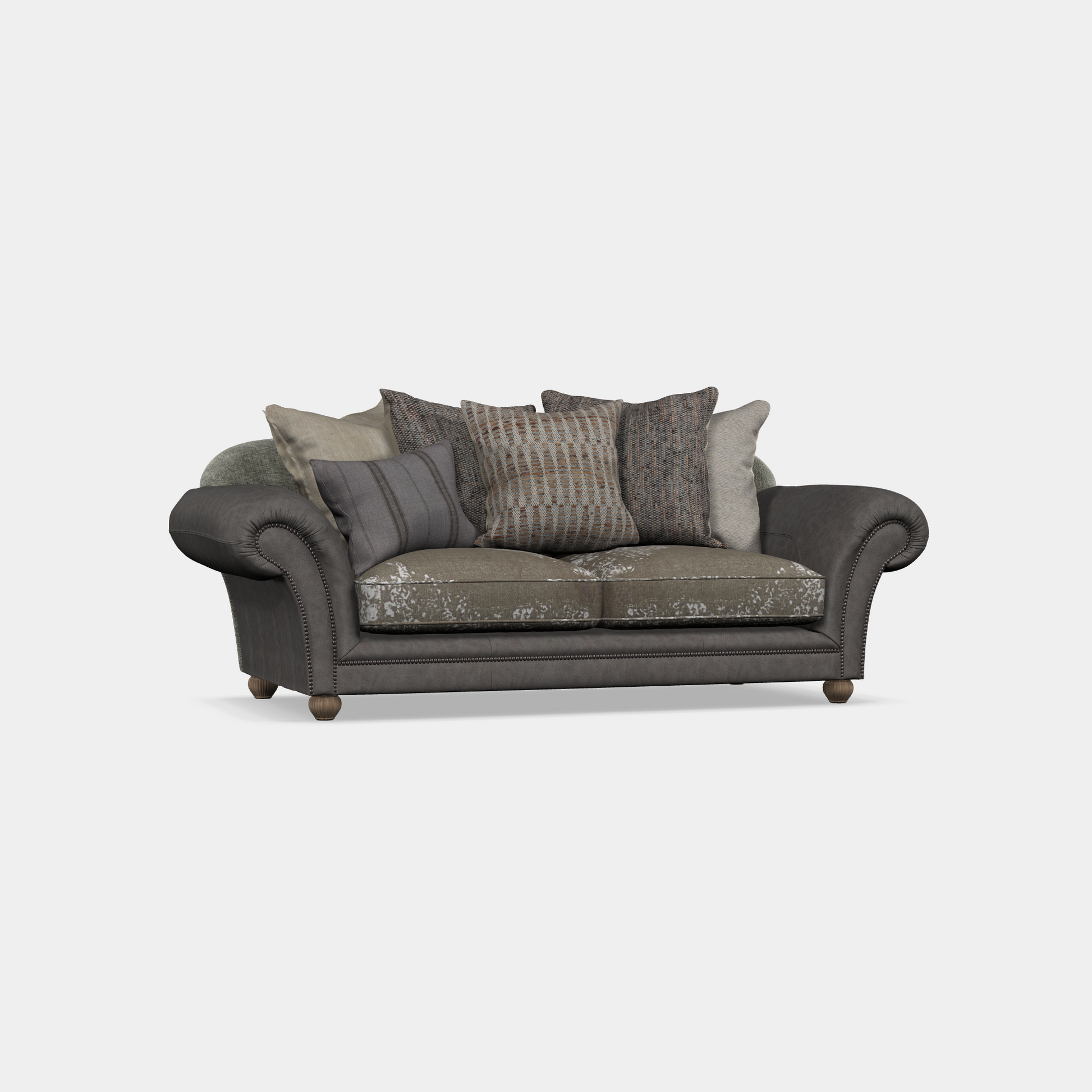 Large scroll arms and a luxurious blend of leather and fabric make this a statement sofa for any living room space. A look finished off to perfection with the eclectic mix of artisanal scatters.