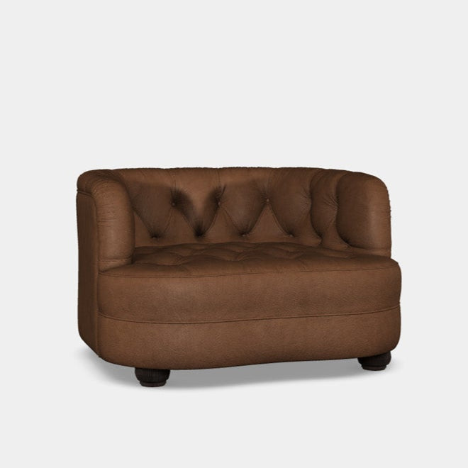 A statement piece - classic chesterfield style, with a curved, low-profile design to create a softer, more modern look.