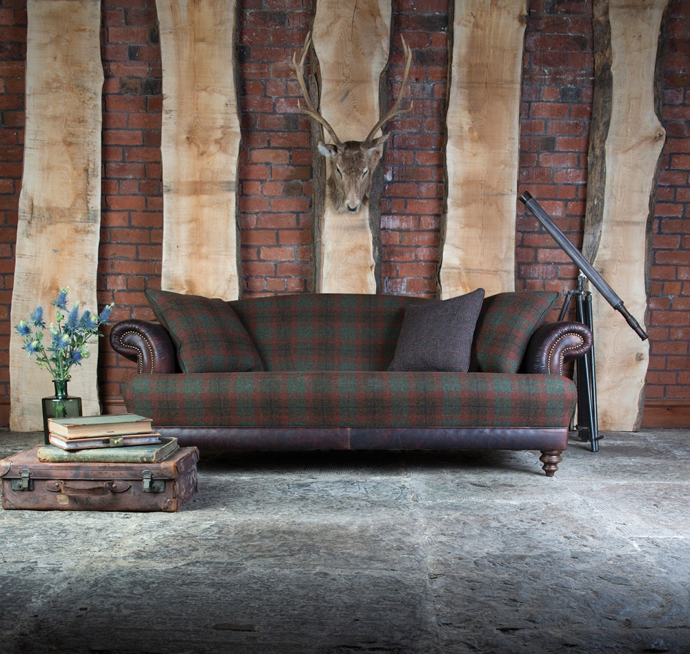 The combination of fabric and leather make the sofa a striking statement piece.